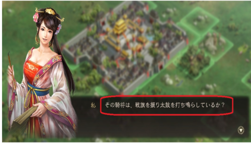 「荒廃した城を『君主殿』Lv1→7まで立て直し、Lv5土地まで占領可能な軍勢を率いるまで成長した」私(=テスター零式)は、斥候の報告に対して冷静に、「その騎将は、戦旗(せんき)を振り太鼓を打ち鳴らしているか?」と、斥候に尋ねます。