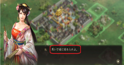 『城外に控えている悪人面の大男』を、「急いで白に招き入れよ。」と指示を出します。