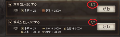 | ≪建築系≫ | 『軍営』を「Lv5」にする (報酬) |